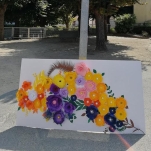 Mur de 7 mètres entièrement décoré de fleurs en papier pour habiller les couloirs de la cantine ! Les élèves et le personnel sont ravis ! Très beau travail.